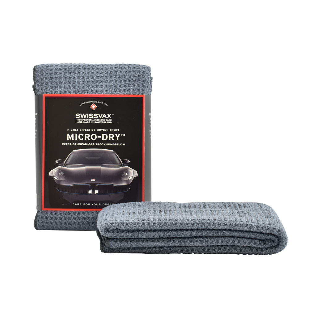 Tento super měkký vaflovitě tkaný vysoušecí hadřík, vyrobený z vysoce kvalitního materiálu z mikrovlákna, byl pro nás speciálně vyvinut v Německu, pro vysoušení automobilových povrchů. Micro-Dry hadřík umožňuje rychlé vysoušení bez šmouh, dokonce i na nemetalických a skleněných površích. Budete překvapeni kolik času ušetříte při používání v porovnání s běžnou jelenicí. Struktura vaflovité látky, vyrobené ze 70% polyesteru, 30% polyamidu má specifický vzor, který drasticky zvyšuje jeho absorpční schopnost. Výsledkem je výborné zadržování vody a rychlé vysoušení bez šmouh. Extra velikost 80 x 55 cm umožňuje použití pouze jediného Micro-Dry na celý vůz - za podmínek, že byla použita stěrka Hydralip. Jinak doporučujeme použít dva Micro-Dry hadříky na jeden vůz.